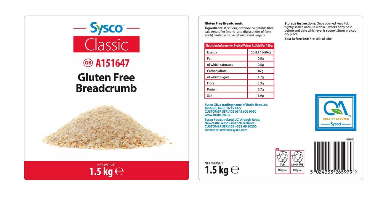 Sysco Classic Gluten Free Breadcrumbs 1.5kg