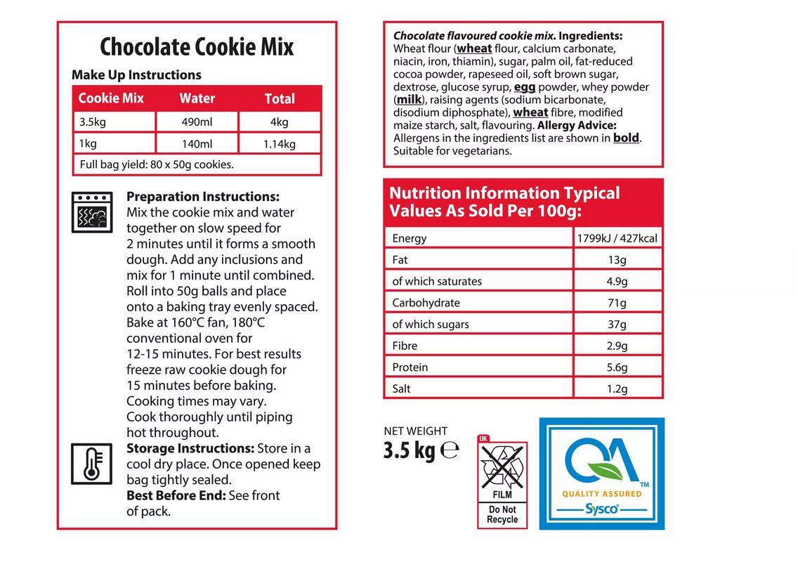 Sysco Classic Chocolate Cookie Mix 3.5kg