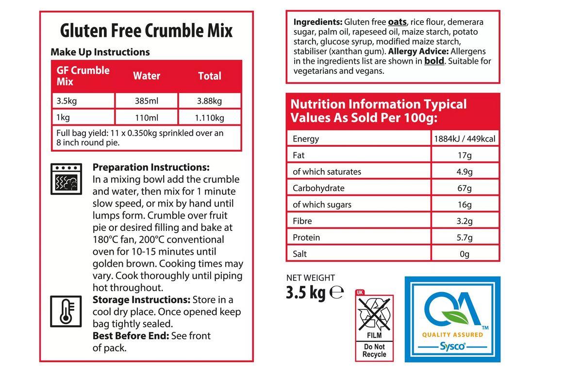 Sysco Classic Gluten Free Crumble Mix 3.5kg